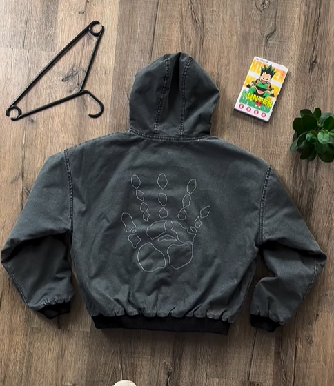 This is our classic hoodie made of double-layer thick French terry. Embroideries on both sides