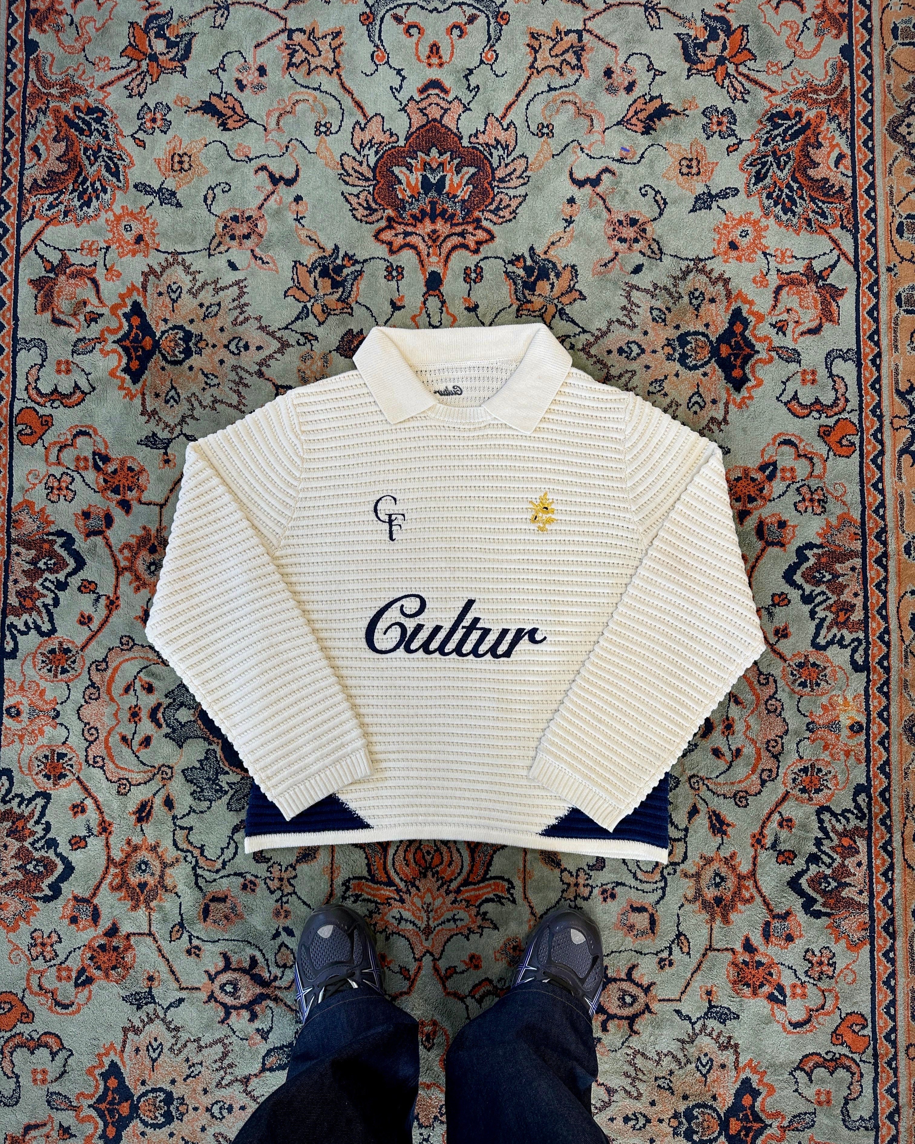 Our classic Football Knit, made out of 70% cotton and 30% wool material.