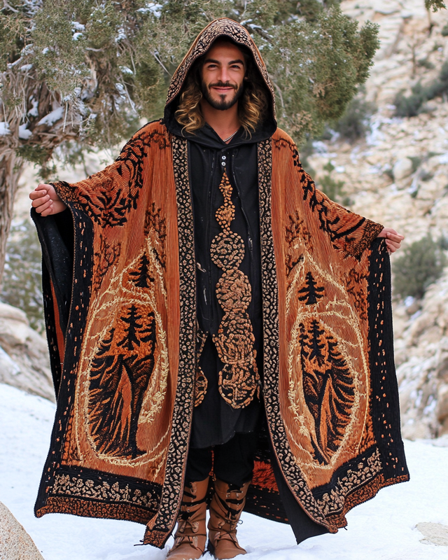 Men's ethnic style autumn and winter hooded jacket 37a2