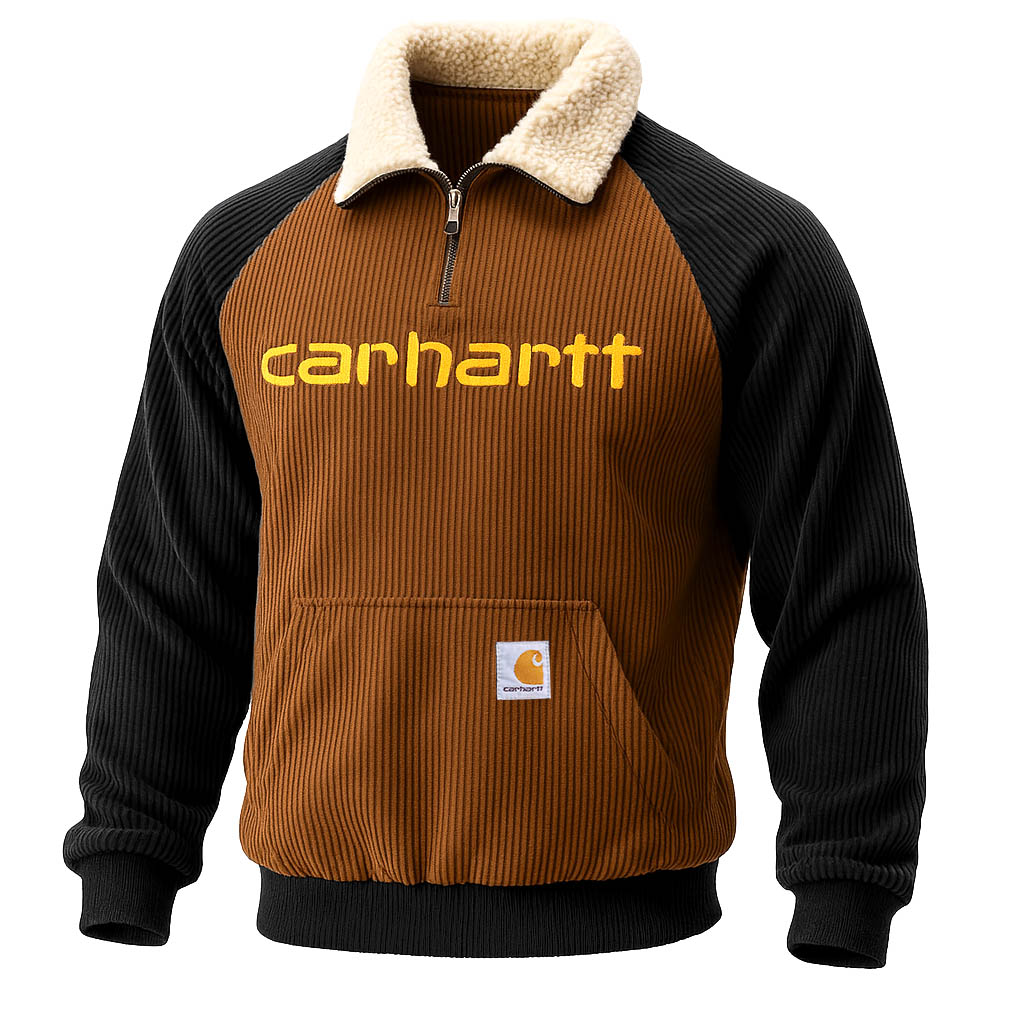• Design Elements: Contrasting sleeve colors, sherpa collar for added warmth, embroidered logo on the chest