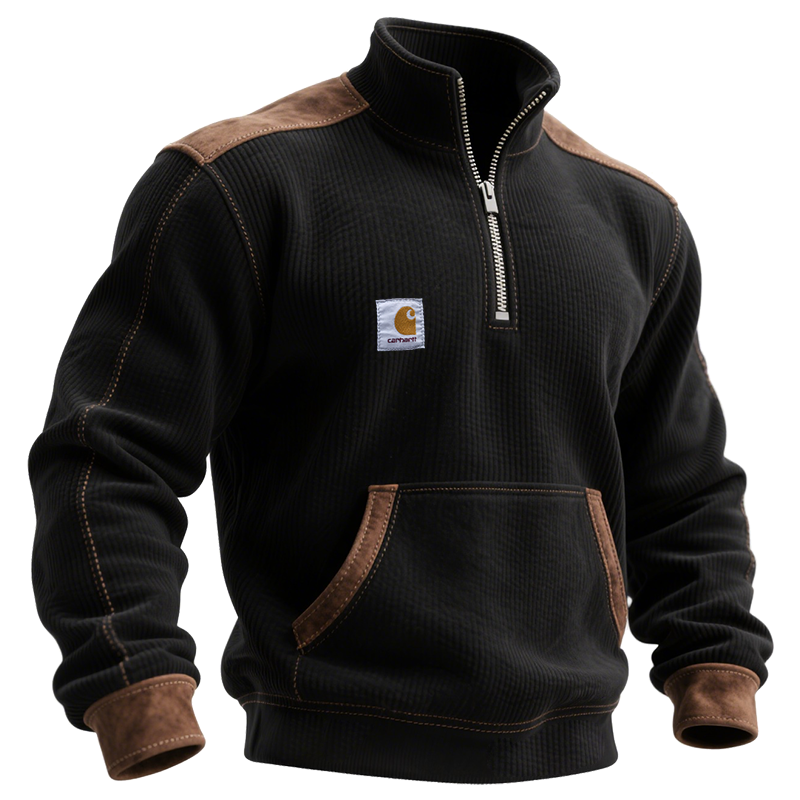 • Design Elements: Contrasting shoulder panels, front pocket, half-zip closure