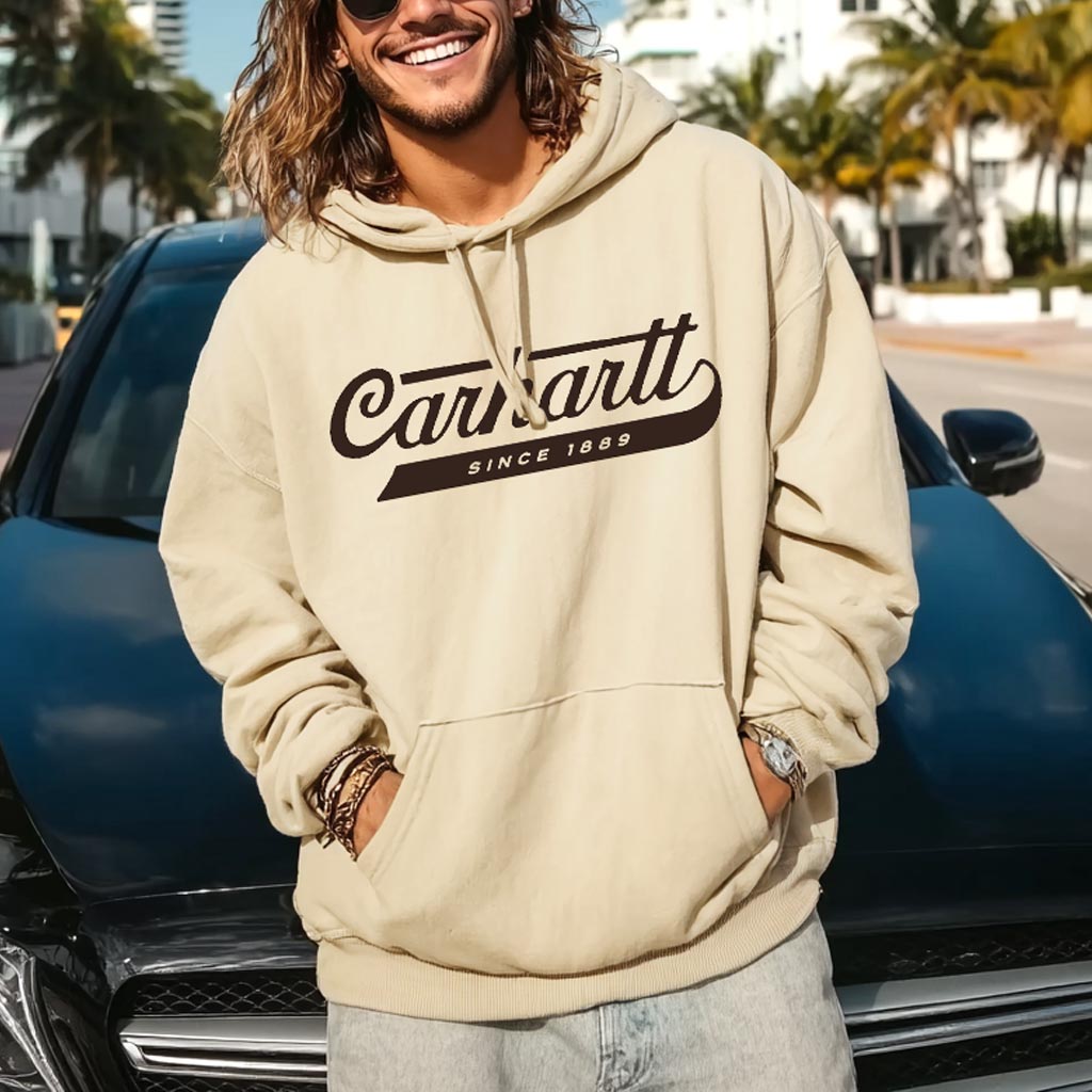 • Design Elements: Large front pocket, drawstring hood, vintage-style logo print
