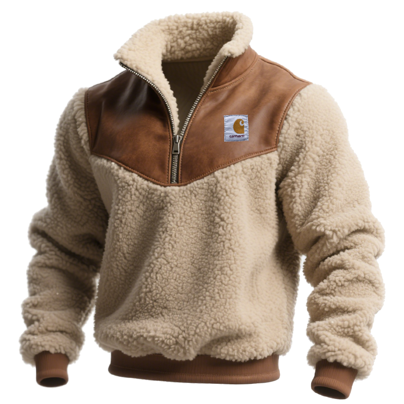 • Design Elements: Half-zip closure, faux leather shoulder panel, embroidered logo patch
