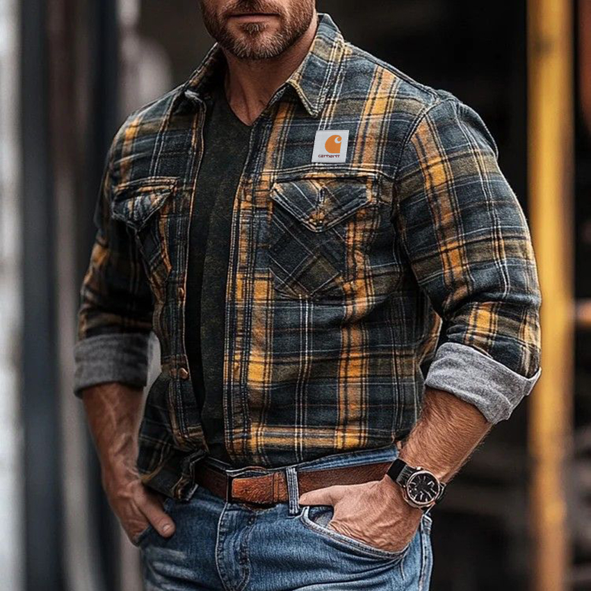 • Design Elements: Chest patch pockets with flap closure, rolled-up sleeves, and a classic plaid pattern
