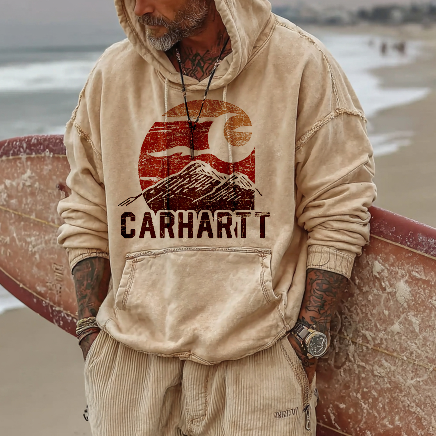 • Detail Features: Front pocket, drawstring hood, wave pattern on sleeves