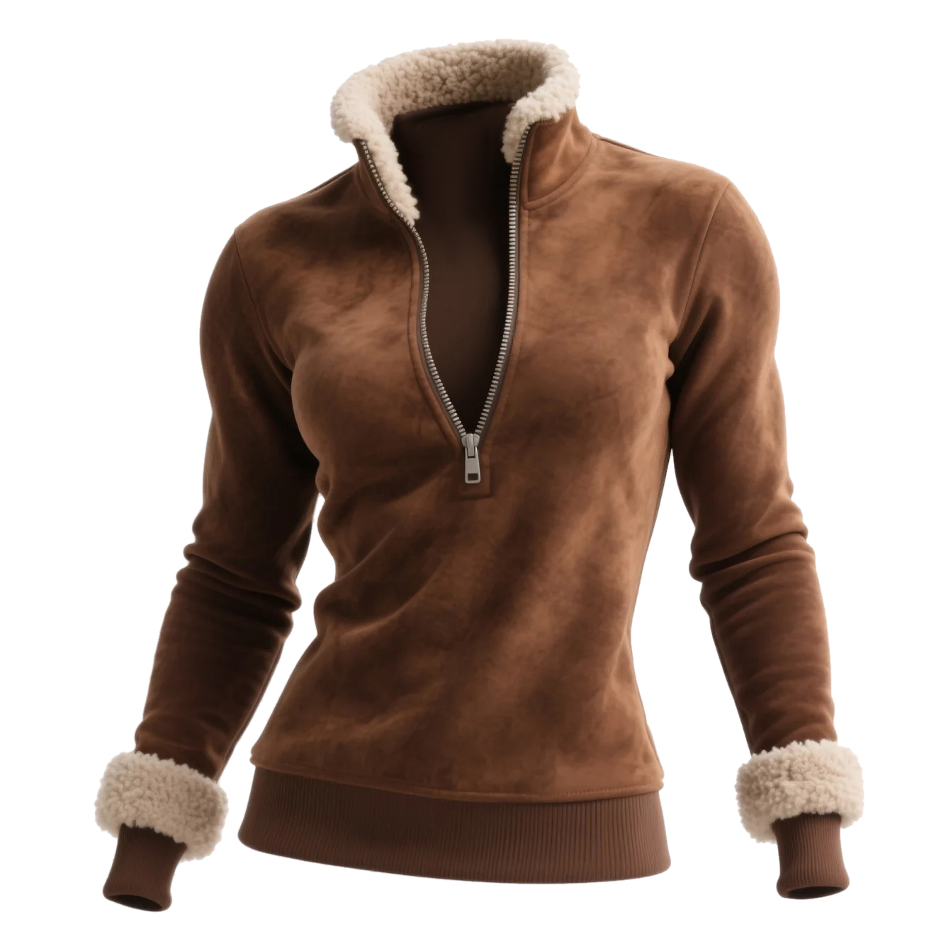 • Design Elements: Half-zip closure, sherpa collar and cuffs, ribbed hem