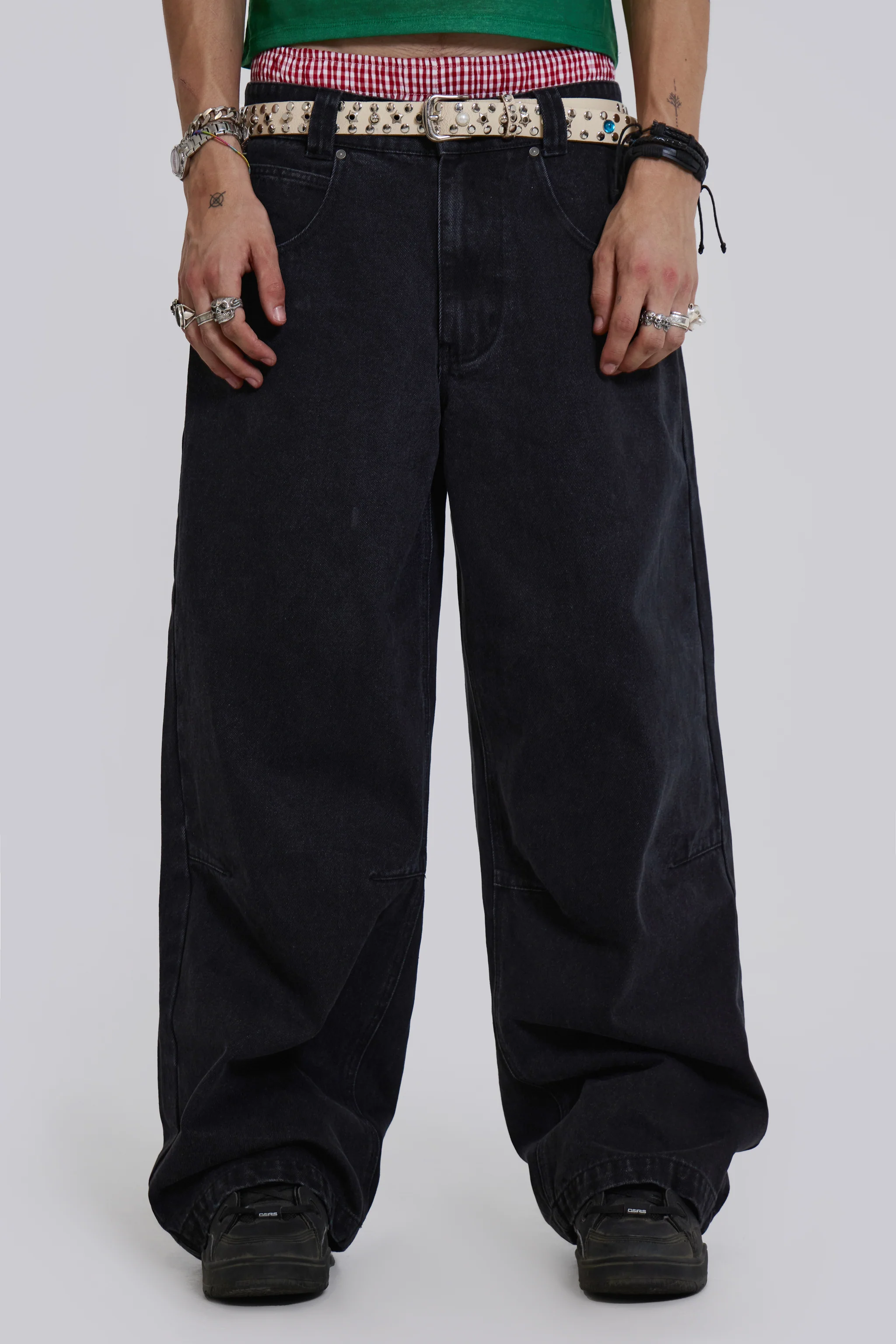Introducing the Solid Black Low Rise Colossus Jeans. Our original low rise fit creates an unparalleled silhouette designed in an all-black colourway with black stitching. Thoughtfully placed knee darts enhance the comfort of this garment, making them ideal for everyday wear.