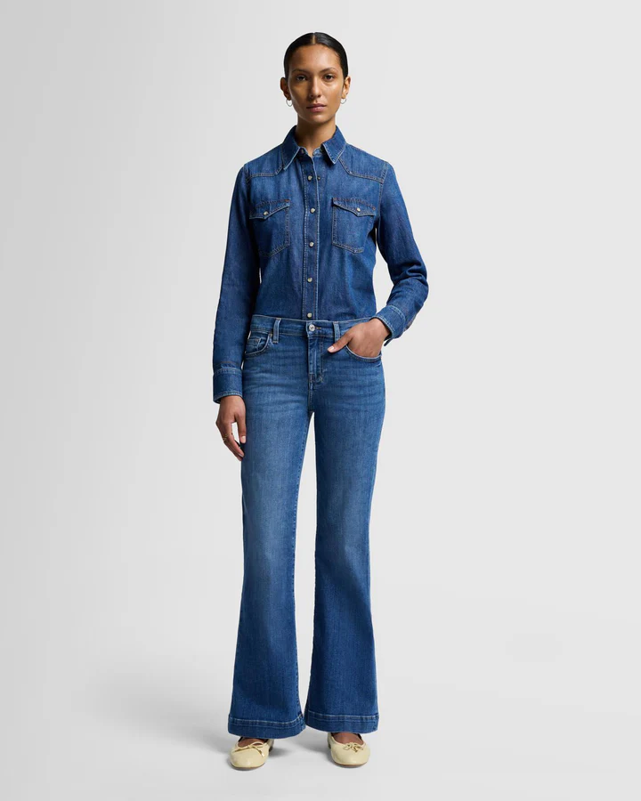 Fits like: Fitted through the hips and thighs. This mid-rise denim has a wide full-length leg and a subtle flare for a long, lean silhouette. Featuring a shorter inseam than our original Dojo, so you won't need to go to the tailor.