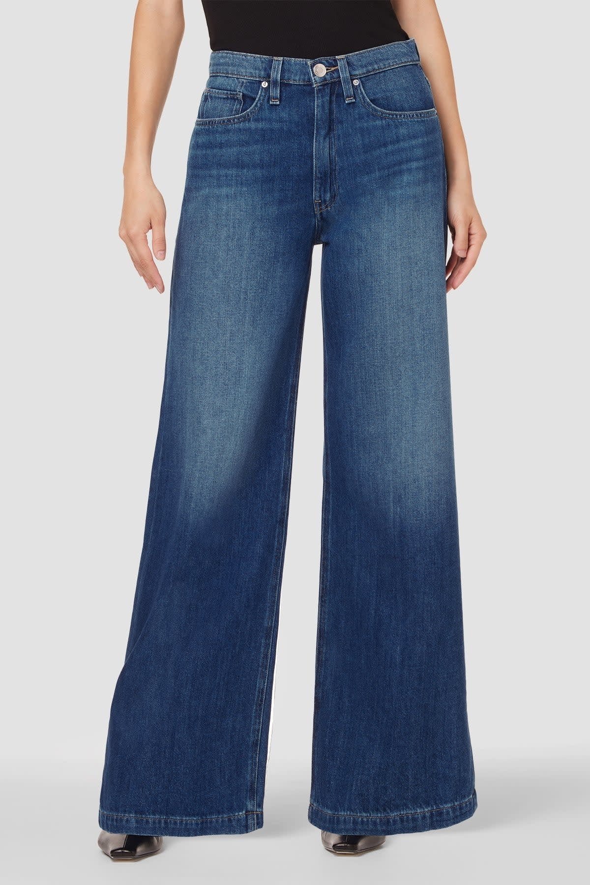 SIZE DOWN. These are one of my favorite pairs of denim that we have ever carried. The way I like them to fit I typically size down once if you're thicker through your mid section and twice if you're slimmer in your waist! They fit tight until right under your but and then release into this wide leg stove pipe leg. They are the best with an incredible band tee or even a cute crop!