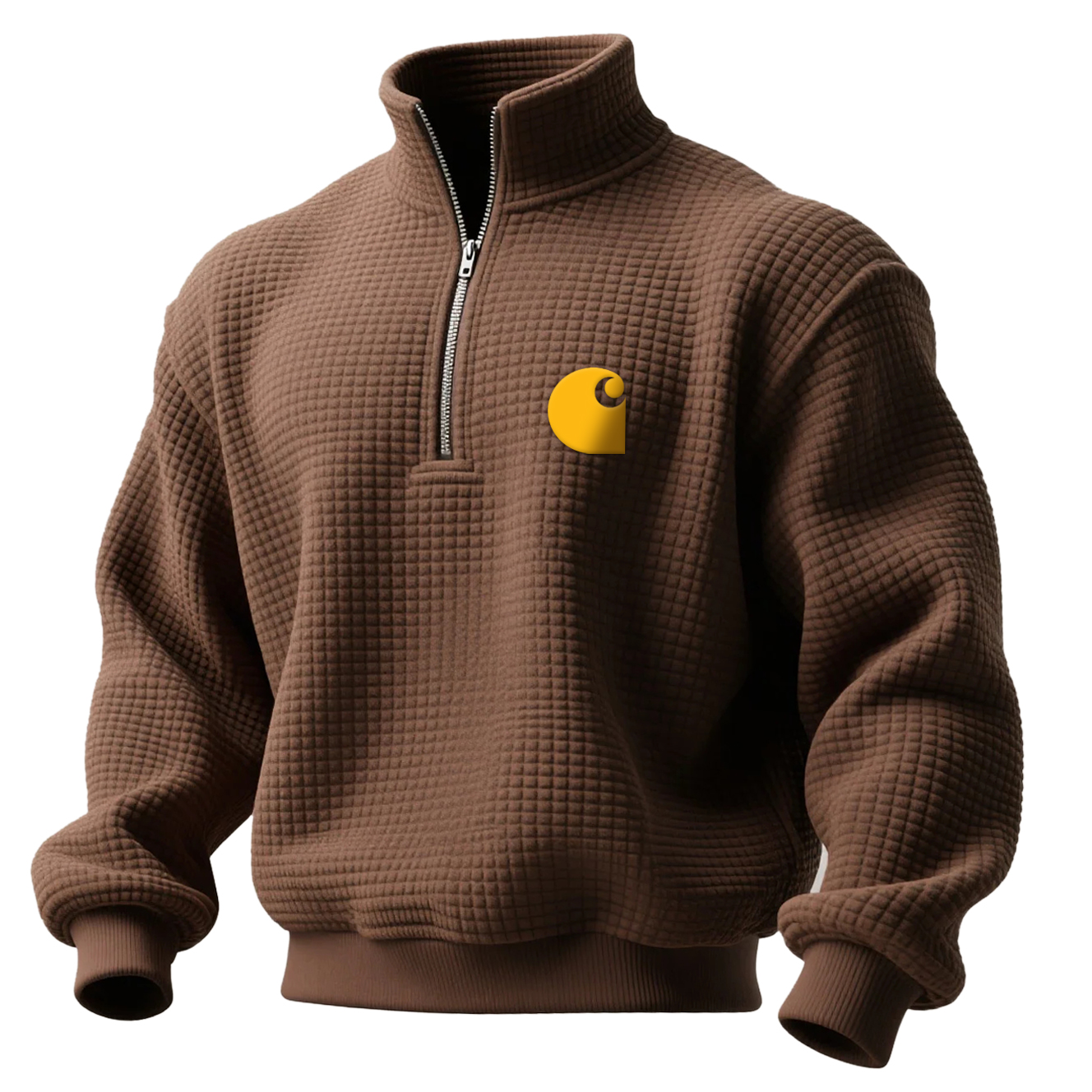• Design Elements: Chest logo patch, half-zip closure, ribbed cuffs and hem