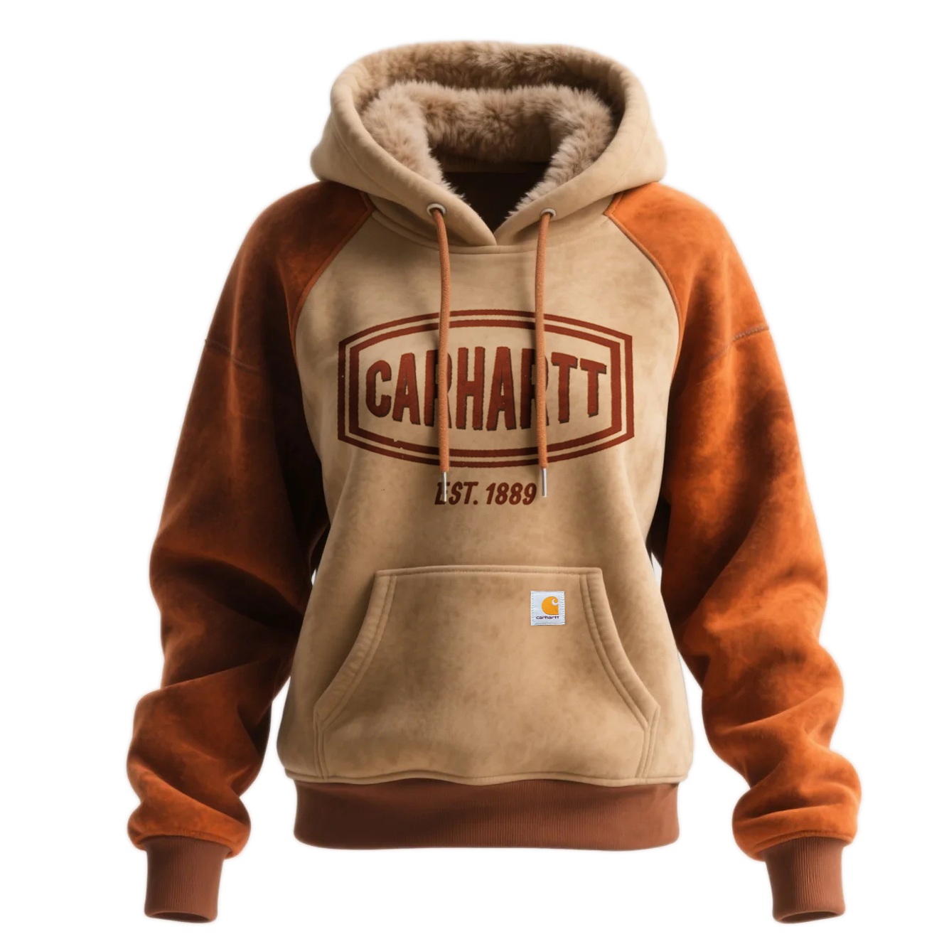 • Design Elements: Contrasting sleeve colors, front pocket, bold logo print